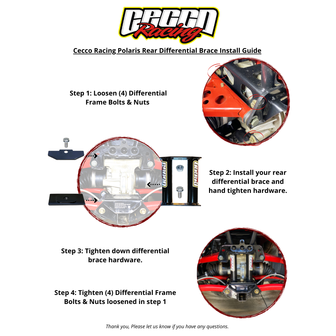 The Polaris frame design uses the rear differential to tie to upper & lower frame rails. Frame flex over time loosens diff bolts and even cracks rear diff once these bolts get loose when frame flexes.